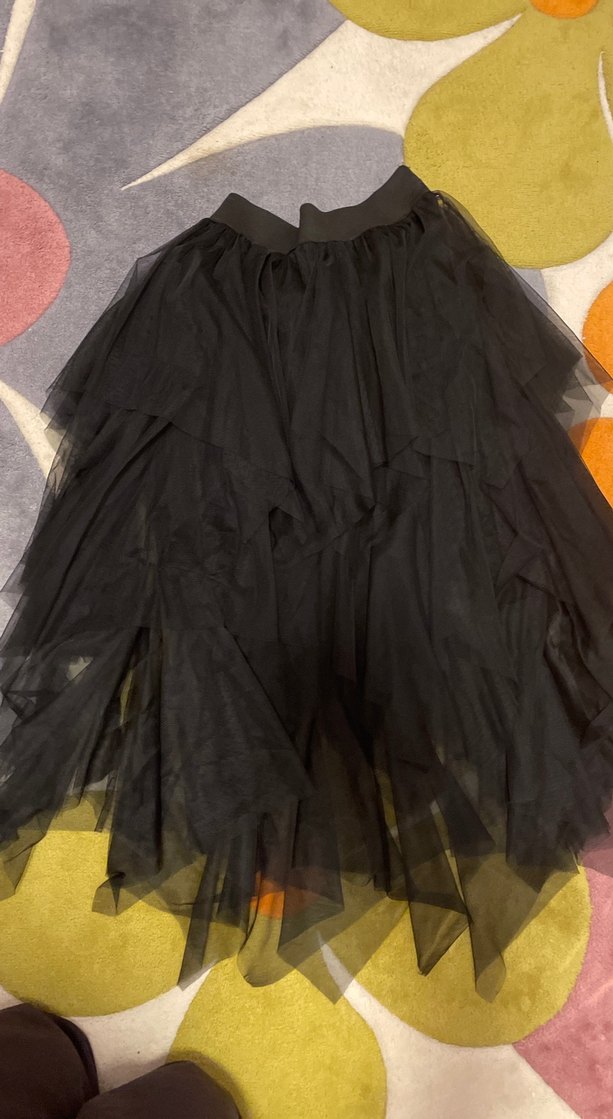 Bu siyah uzun etek, katmanlı fırfırlar ve bol kesim ile yumuşak sentetik kumaştan yapılmıştır. Gotik tarz ve parti için uygundur. beli lastikli small medium uyumlu