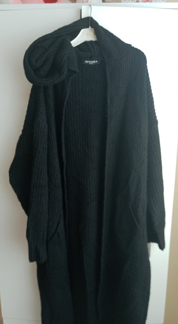 Siyah, uzun yünlü, örme, boğazlı ve uzun kollu kadın hırka. iki kez giyildi Trendyol dan alindi standart beden