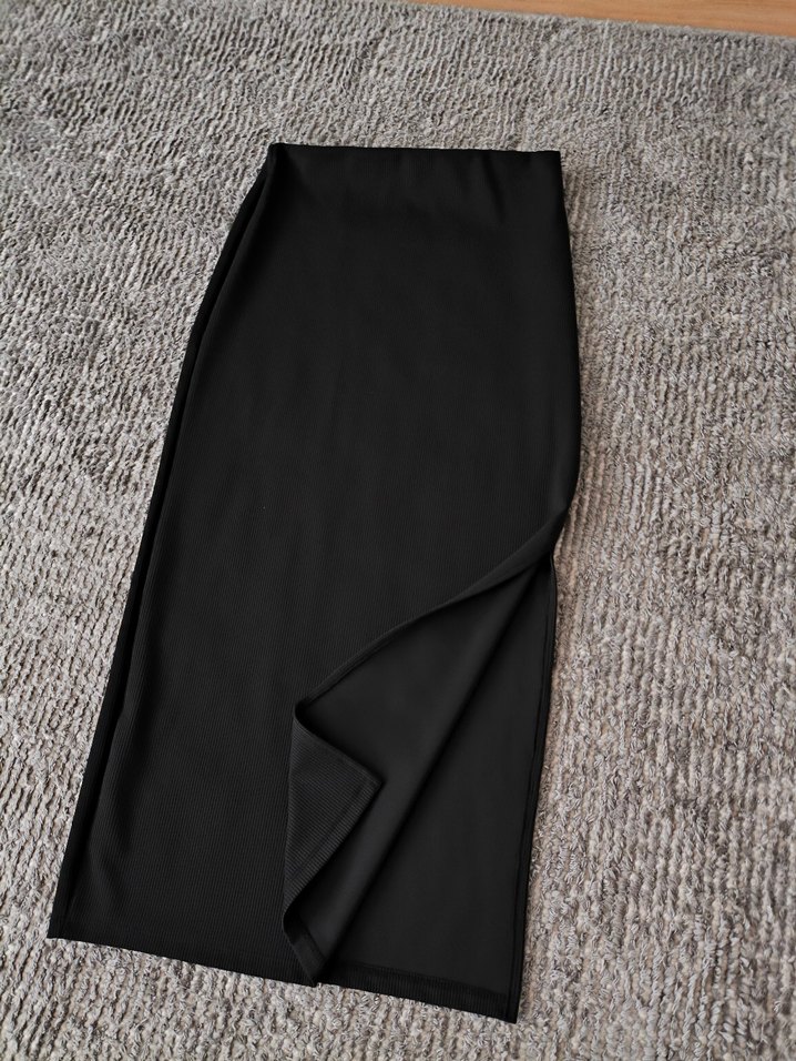 Kadınlar için siyah uzun kalem etek, yumuşak sentetik kumaş ve derin yırtmaç spor etek esnek kumaş sıfır ürün