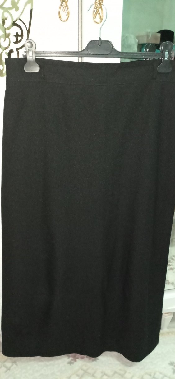etek 1 kez kullanıldı dar nedeniyle fermuar yeri açıldı ama dikili yinede defo sayılır Kadın siyah uzun basic etek, düz kesim ve sentetik kumaştan, ofis için sade ve şık bir stil sunar.