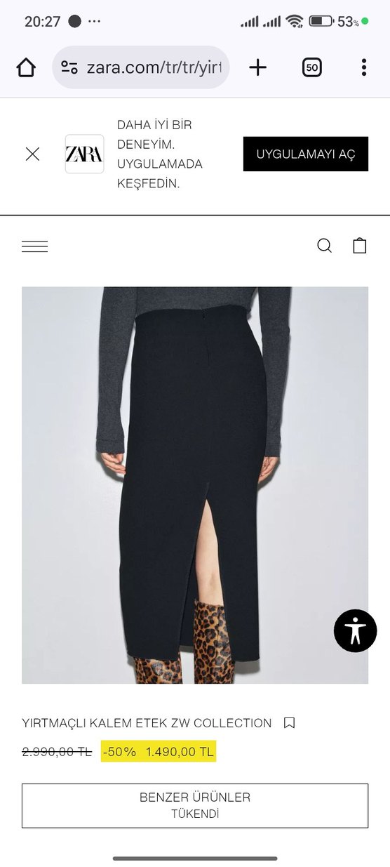 siyah renkte, yırtmaçlı uzun etek Zara hiç giyilmedi