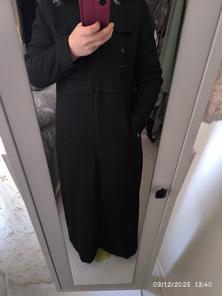 siyah kaşe kaban hiç bir deformesi yok sağlam kullanılabilir durumda. 46 beden. altında ki payı kestirmedm boya göre uzatılabilir.