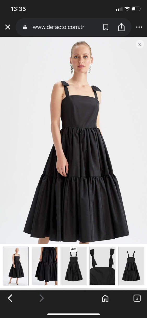 Siyah renkli, askılı ve fırfırlı detaylara sahip uzun elbise. Straplez yakalı ve regular fit kesimiyle, sentetik kumaştan üretilmiştir. Avant-garde ve Paris tarzına uygun.
