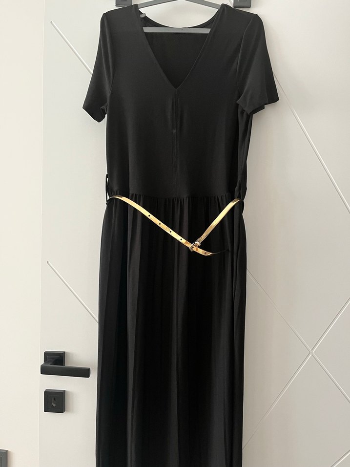 Kadın Siyah Uzun Kemerli Elbise - Görsel 1