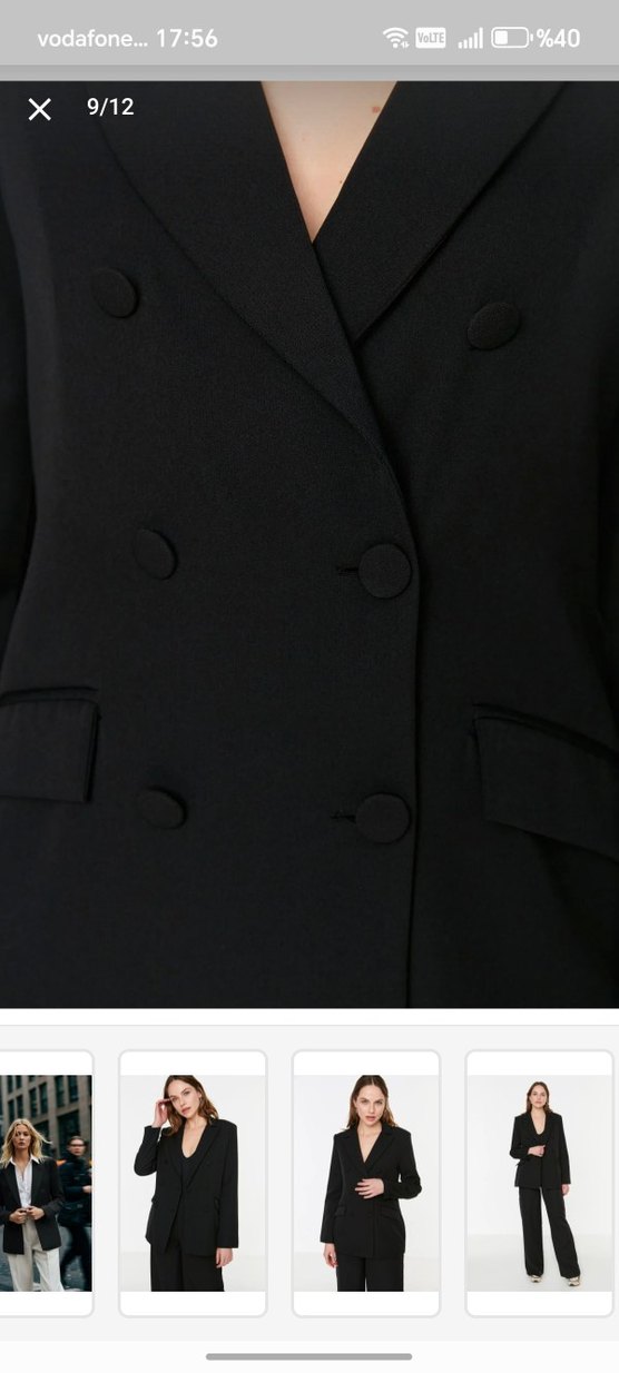 Kadın Siyah Uzun Kesim Düğmeli Blazer - Görsel 4