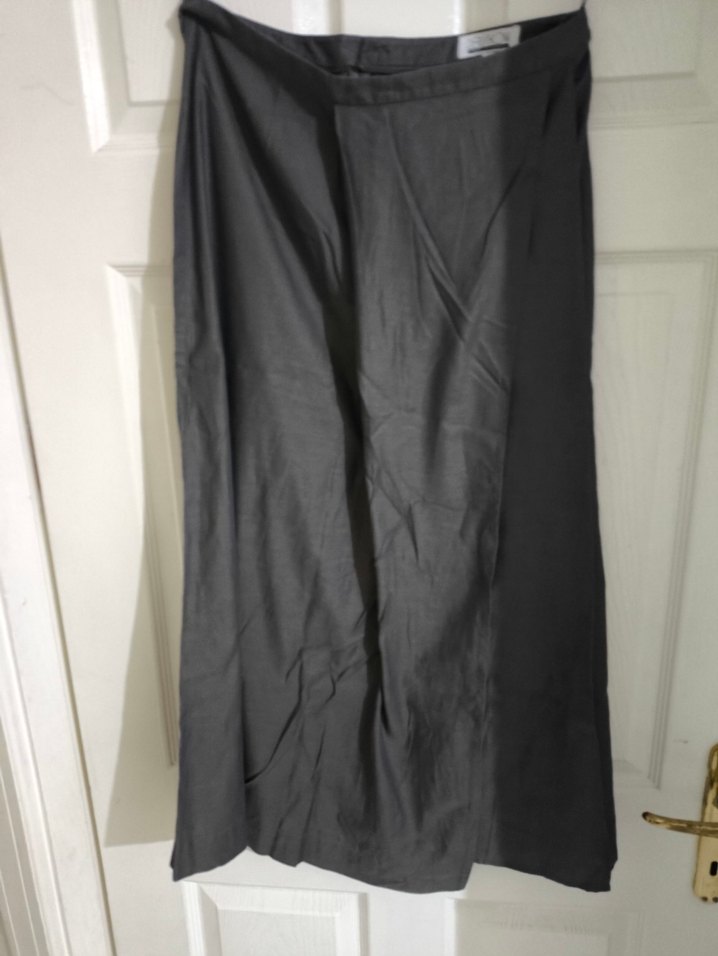 Kadınlar için siyah keten uzun etek, bol kesim ve drapeli tasarıma sahiptir. Ofis için minimalist gotik tarzda uygun.