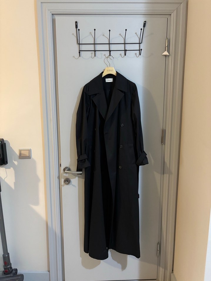 Siyah uzun keten trençkot, notched lapel ve drapeli tasarıma sahiptir. Uzun kollu ve regular fit, günlük minimal sokak modası için uygundur. Piyasada bu fiyata bulmak zor hiç giyilmedi fazlalıktan satıyorum