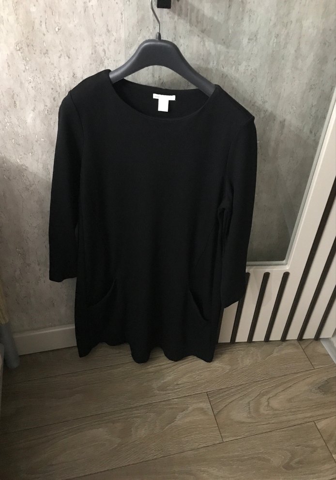 Kadın siyah uzun kollu elbise yuvarlak yaka ve bol kesime sahip. Pürüzsüz sentetik kumaştan, minimal ve desensiz tasarım, günlük kullanıma uygun kısa boyda.