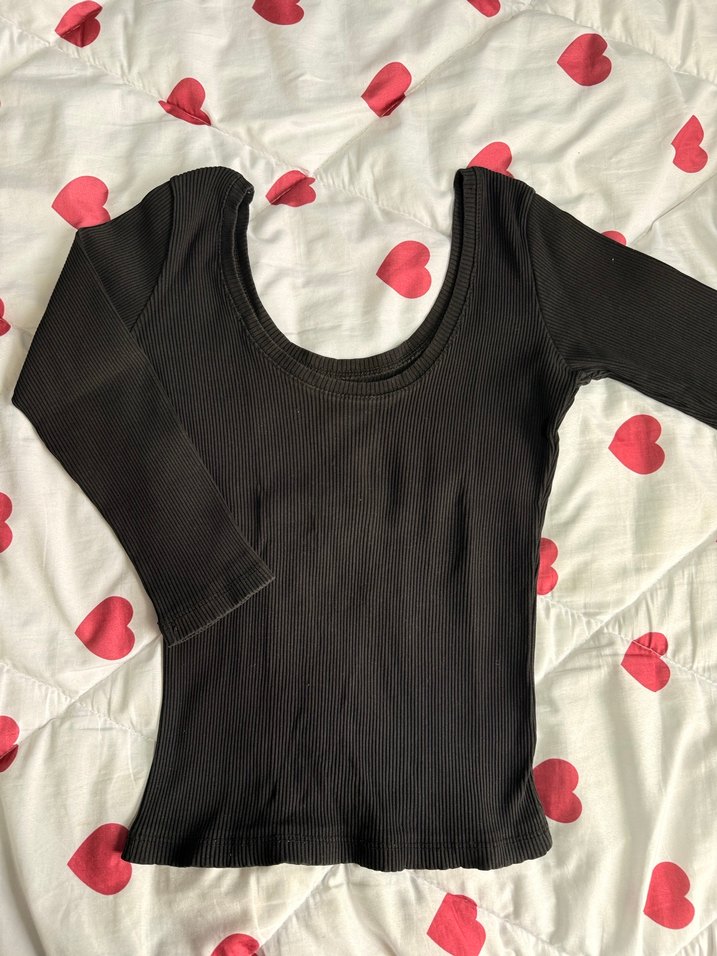 Dar kesim siyah uzun kollu, tek renk bluz, tekne yakalı ve yumuşak sentetik kumaştan, sokak stilinde şık bir görünüm sunar.