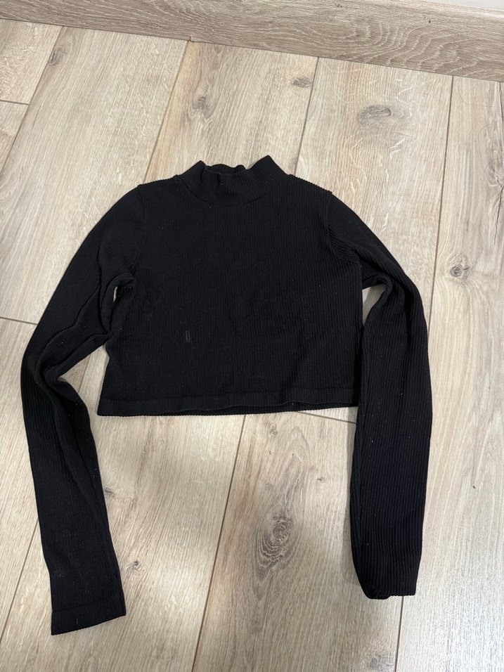 Kadın Siyah Uzun Kollu crop