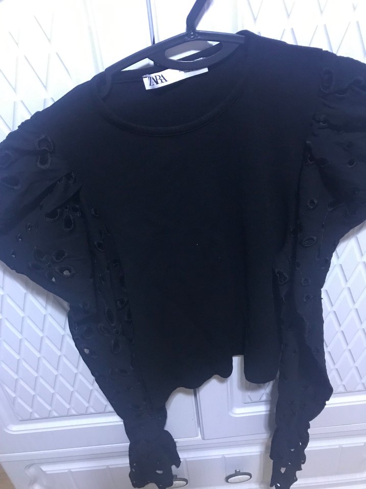 Kadın Siyah Uzun Kollu dantel detaylı üst