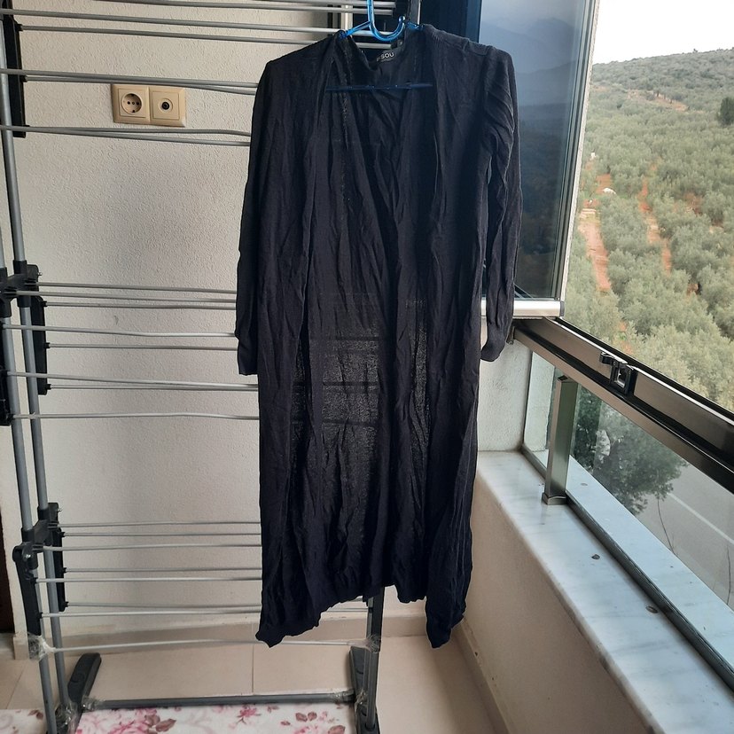 Kadın siyah uzun kollu, gevşek kesim, düz desensiz, gotik tarzda uzun boy giyinme.