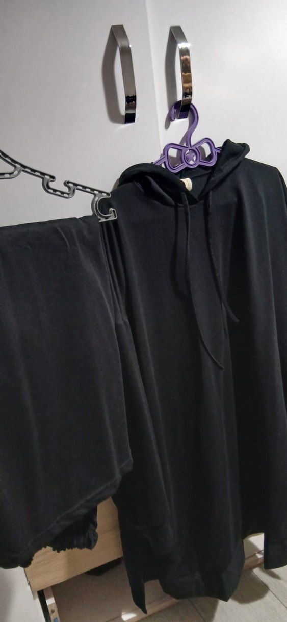 Kapüşonlu, uzun kollu, siyah, gotik tarzda bol kesim takim Düz ve koyu renkte kumaştan üretilmiştir.