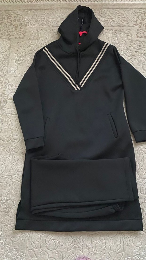Kadınlar için uzun boy, regular fit ve V yakalı bu eşofman, siyah ve gri çizgili detaylara sahip yumuşak kumaştan üretilmiştir. Günlük kullanıma uygun, rahat ve şık bir seçimdir. bir kere giyildi