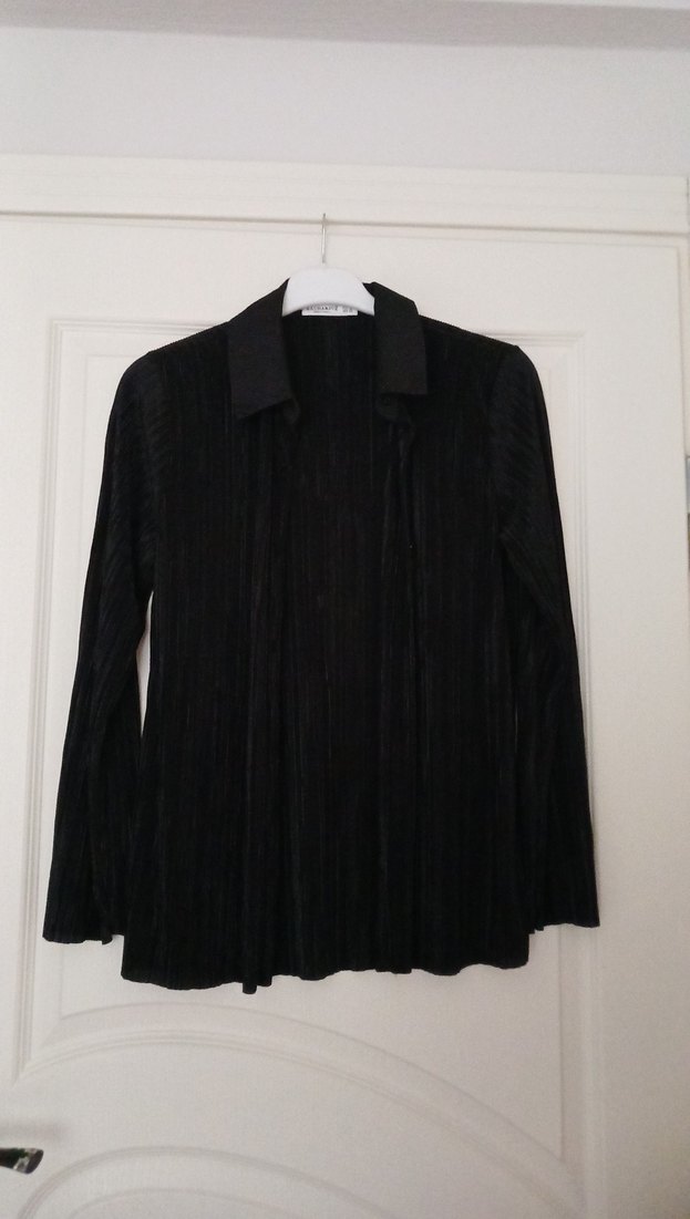 Kadın Siyah Uzun Kollu Pilili gömlek