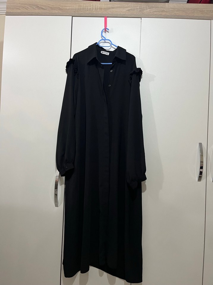 Kadın Siyah Uzun Kollu Salaş Uzun Elbise