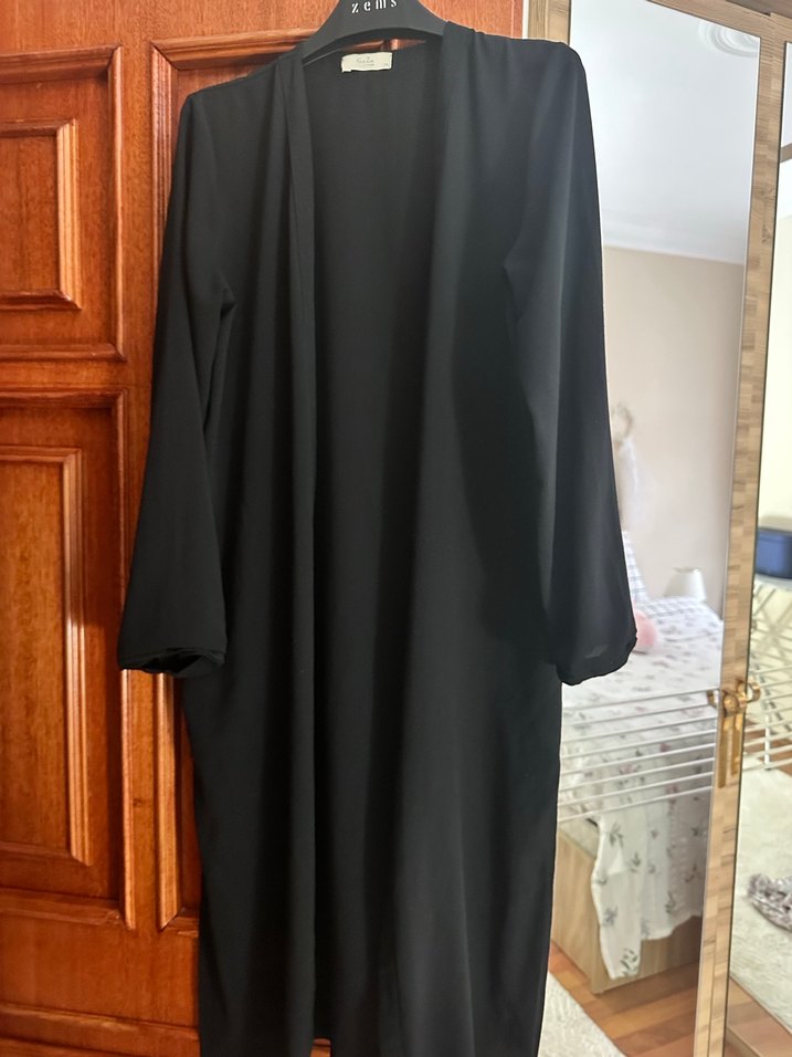 Kadın Siyah Uzun Kollu Uzun Boy Hırka