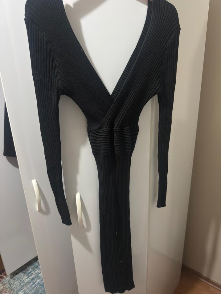 Kadın Siyah Uzun Kollu V Yaka Örme Elbise