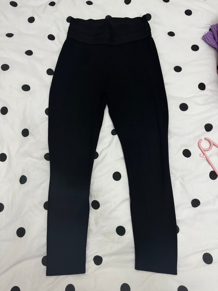 Dar kesim siyah tayt, uzun boylu ve kemerli bel detayına sahip. Düz ve pürüzsüz sentetik kumaştan üretilmiştir. Günlük ve spor şıklığı için uygundur. Kusuru miniciktir görselde belirttim görünmüyor pek.
