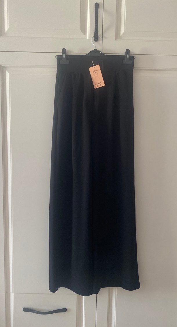 Kadınlar için siyah, uzun boylu, regular fit pantolon. İnce dokulu kumaşı ve minimalist tarzıyla ofis için uygun, zahmetsiz şıklık sunar.