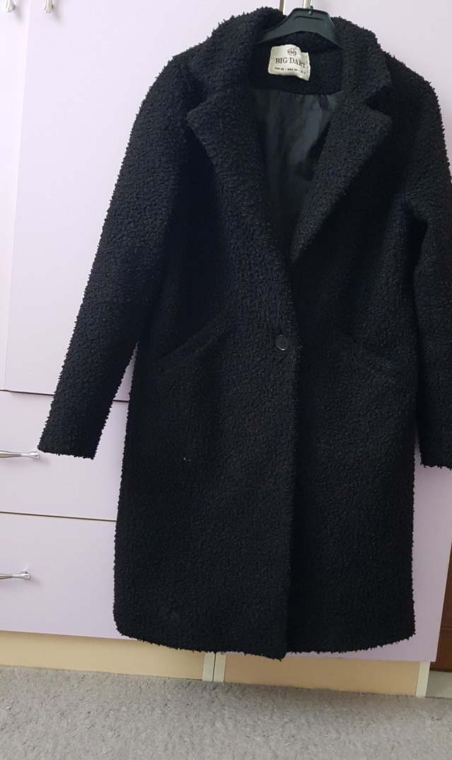 Uzun siyah kaban, kürk detaylı ve kesimli yakalıdır. Yumuşak ve sıcak kumaştan yapılmış, uzun kollu ve rahat kesimlidir. s.m.l.bedene uyumludur