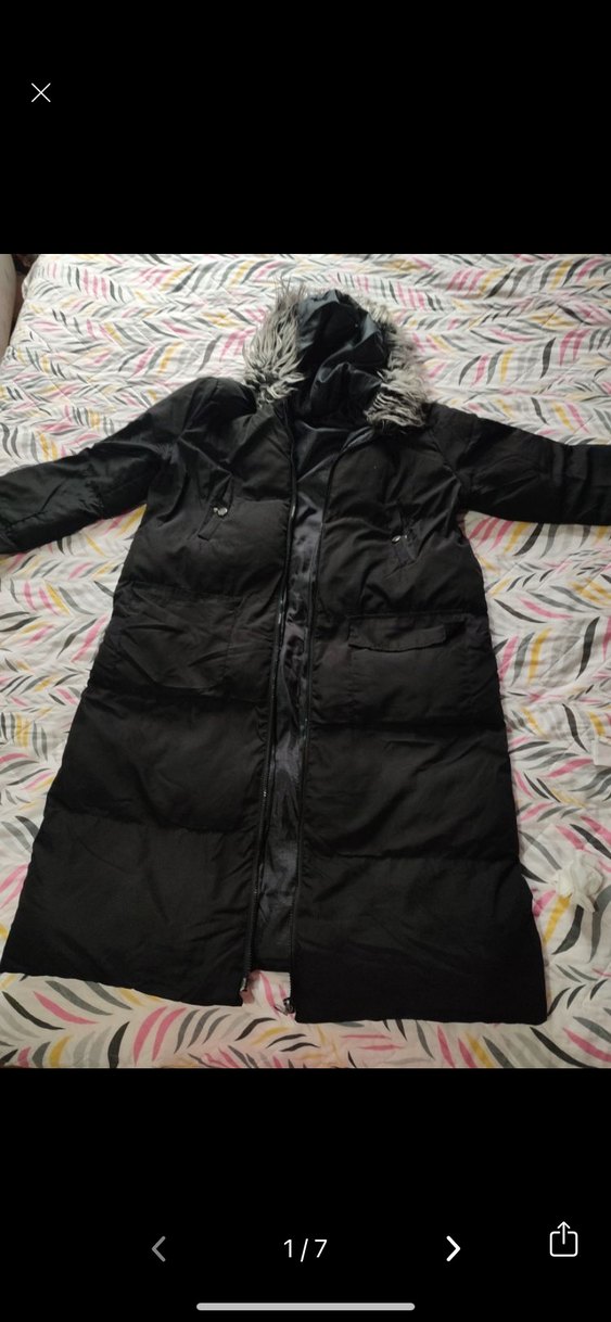 Kadınlar için siyah uzun kışlık mont, kapüşonunda kürk detaylıdır. Notlu yakalı ve uzun kollu, sentetik yumuşak kumaştan yapılmıştır. Sokak stili ve günlük kullanım için uygundur. ❄️