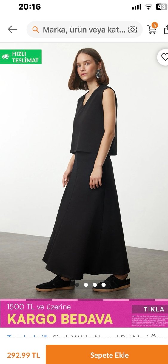 Siyah uzun etek, normal kesim ve pürüzsüz sentetik kumaş ile ofis için zahmetsiz şıklık sunar. Minimalist ve desensiz tasarımı normcore ve avangart tarzı tamamlar. Bir kere giydim temiz