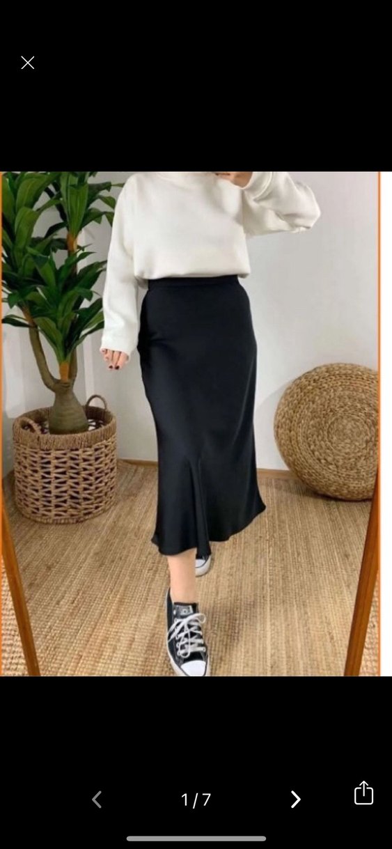 Kadınlar için uzun, siyah, salaş kesim ve ipeksi dokulu etek. Günlük kullanıma uygun, desen içermeyen sade tasarımıyla rahat ve şık bir görünüm sunar.