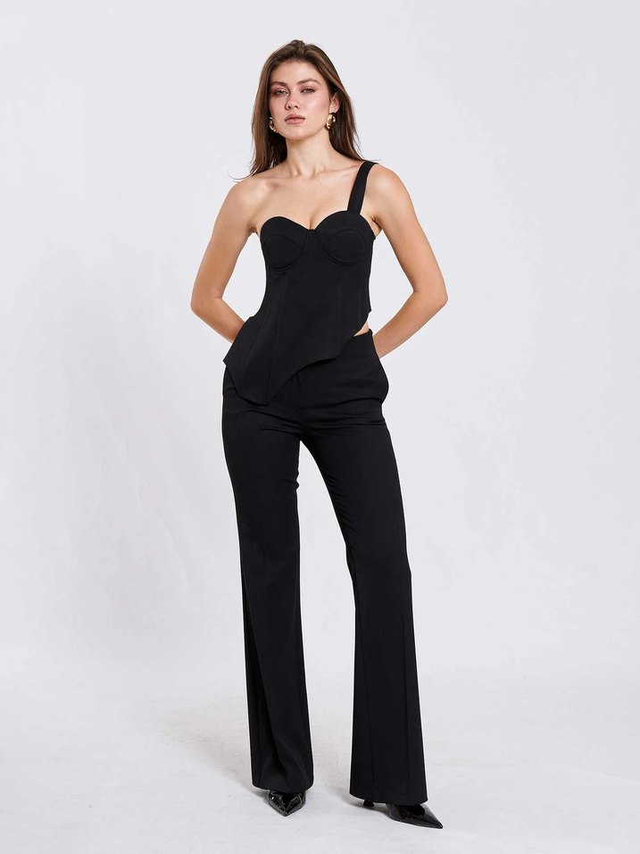 Kadın Siyah Uzun Tek Omuz Bluz (Ön sipariş)