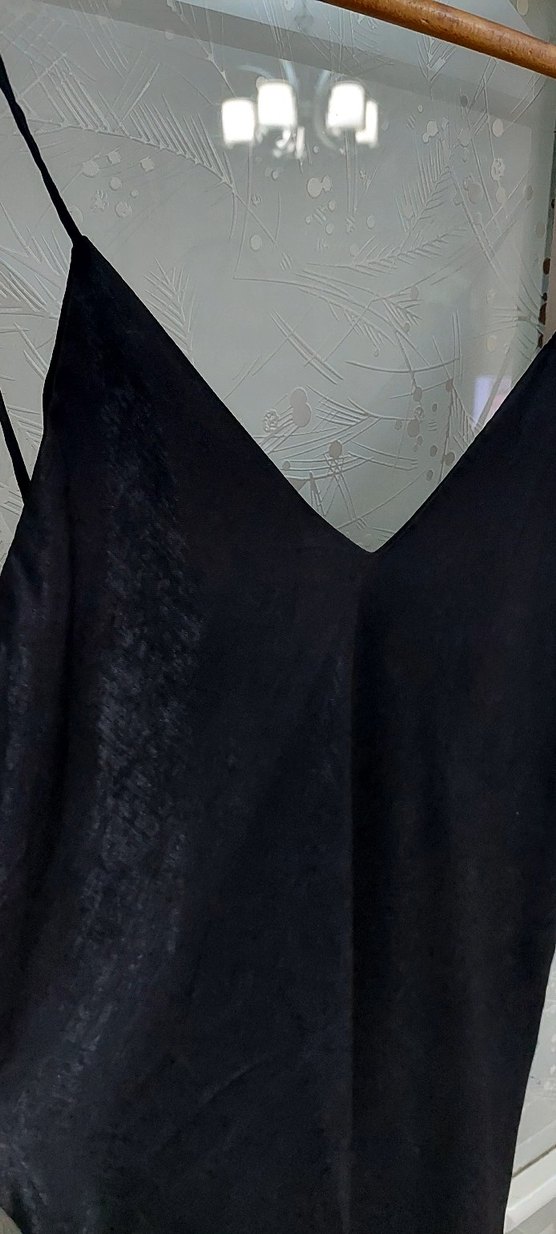 Kadınlar için siyah, uzun ve yaka şık , ipeksi saten kumaştan, gece elbisesi. boy 145cm askilarida icine alarak ölçtüm.