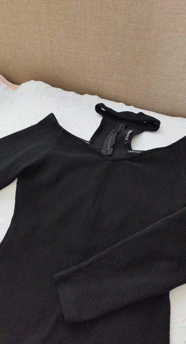 Siyah, V yaka, uzun kollu, elastik dokulu, normal midi boyda, fitilli kumaştan yapılmış kadın kazak. Minimalist gotik tarzıyla günlük kullanıma uygun. çok şık durdugunu soyleyebilirim. boğaz detayı muhteşem.