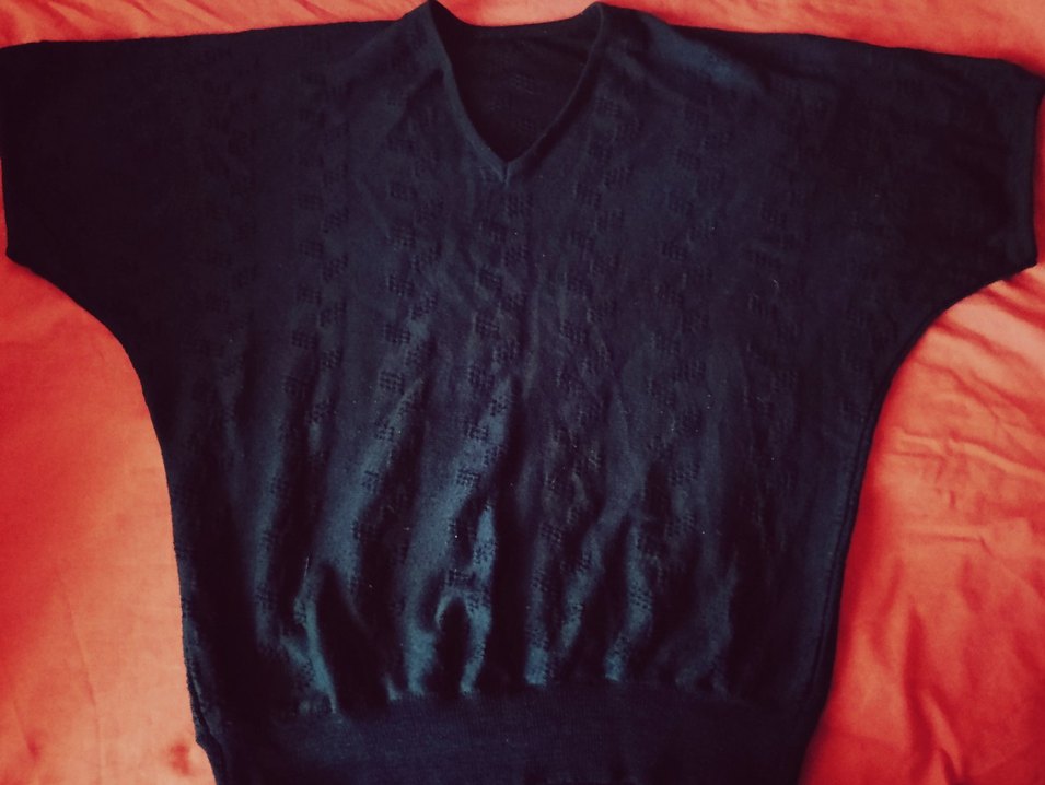 Siyah renkli, V yaka, uzun kollu, örgü dokulu ve bol kesim kadın kazağıdır. Normal boyda ve günlük kullanım için uygundur.