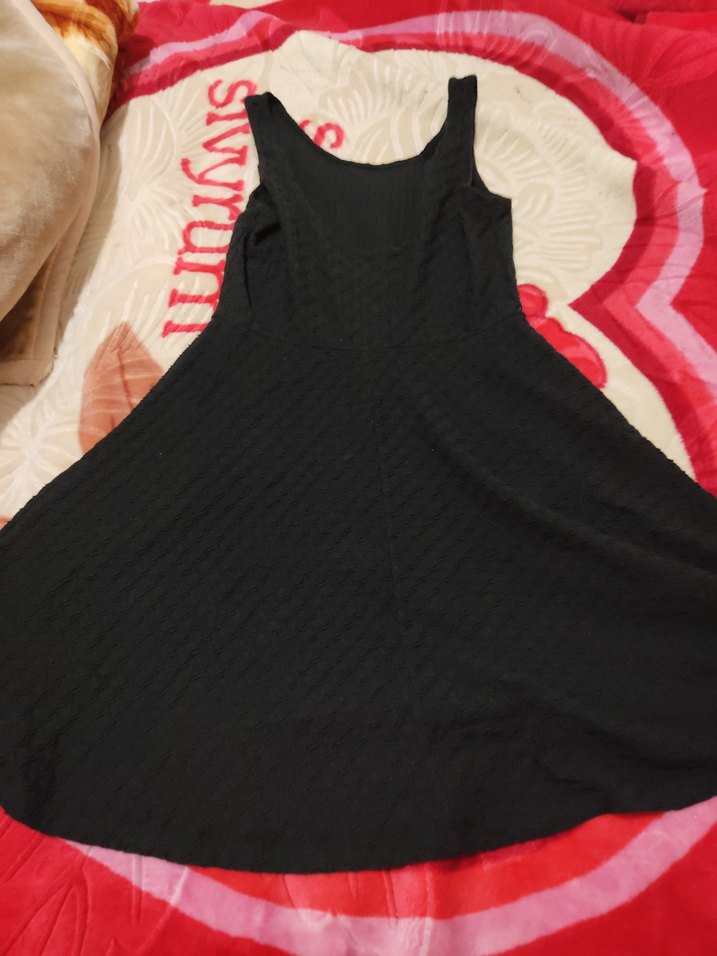 Siyah, kolsuz, V yakalı, triko dokulu ve vücuda oturan midi elbise, yumuşak sentetik kumaştan üretilmiştir. Günlük rahat kullanıma uygundur.