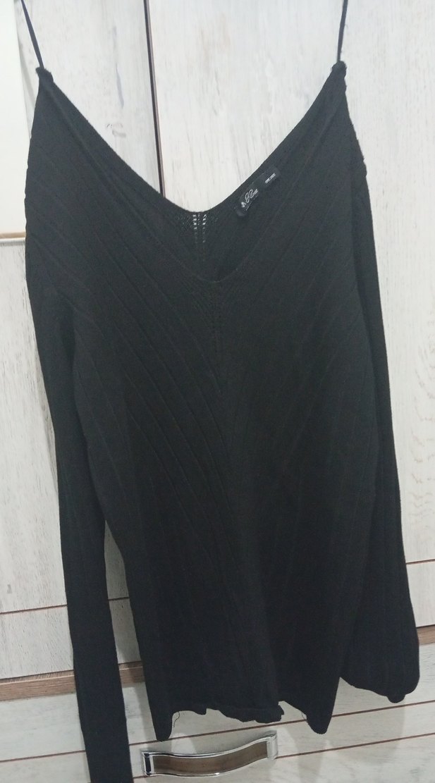 V yaka ve uzun kollu, siyah renkli triko kumaştan yapılmış, fitted kesim uzun kazak. Rahat ve sade tasarımıyla günlük kullanıma uygun goth tarzı sunar.