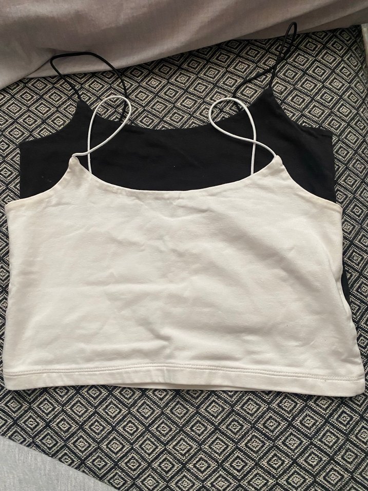 Kadın Siyah ve Beyaz İnce Askılı Atlet