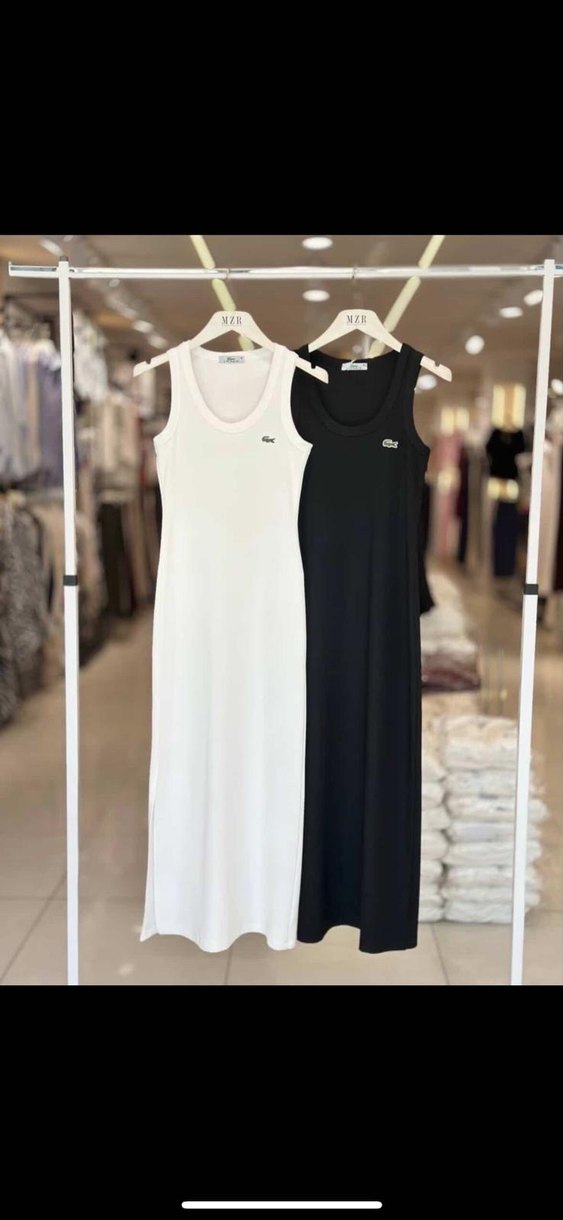 S-M beden seçeneği❤️ Siyah ve beyaz renklerde, pamuklu kumaştan, kolsuz uzun elbiseler.