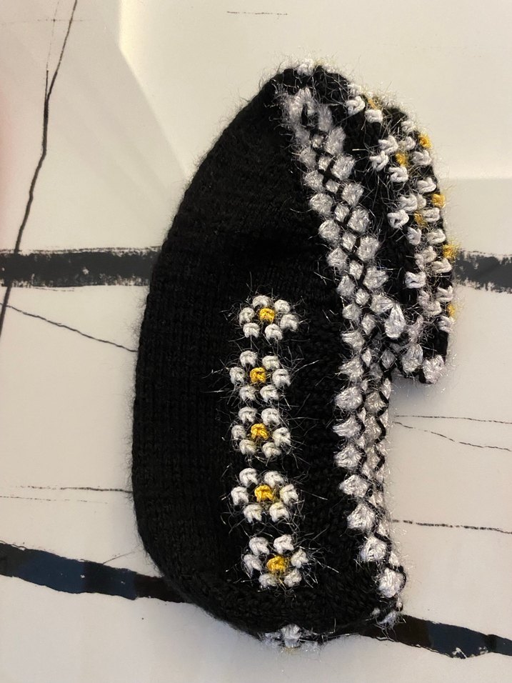 Tane fiyatıdır. Kadınlar için siyah örgü patik beyaz ve sarı detaylarla avant-garde tarz sunar.