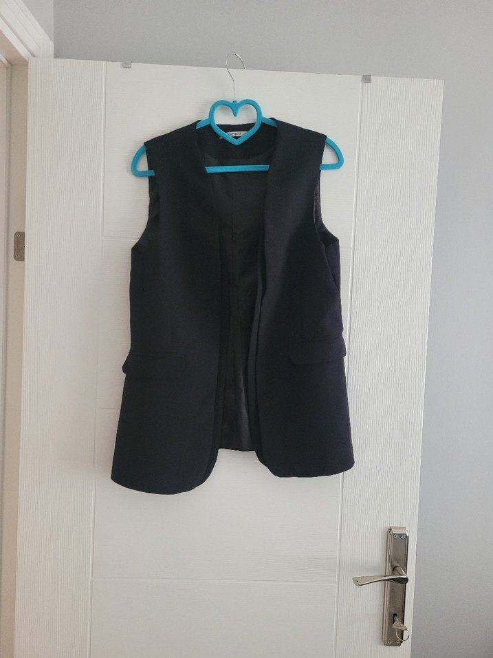 Siyah Yelek.Hiçbir hatası yoktur.İki kol arası 45 cm,Uzunluk 63 cm.