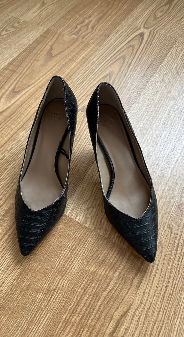 Siyah yılan derisi görünümlü şık ayakkabı .belli belirsiz dökülme mevcut ama kullanıma engel değil
