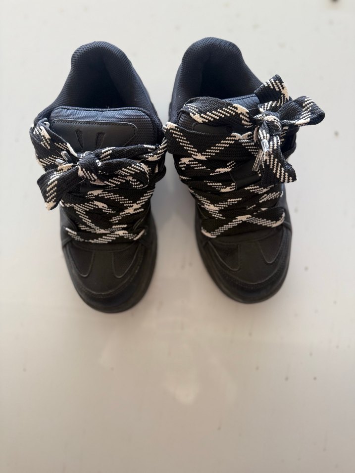 Siyah yılan desenli, bağcıklı ve ince topuklu kadın spor ayakkabısı, sokak stili ve athleisure uyumu sunar.