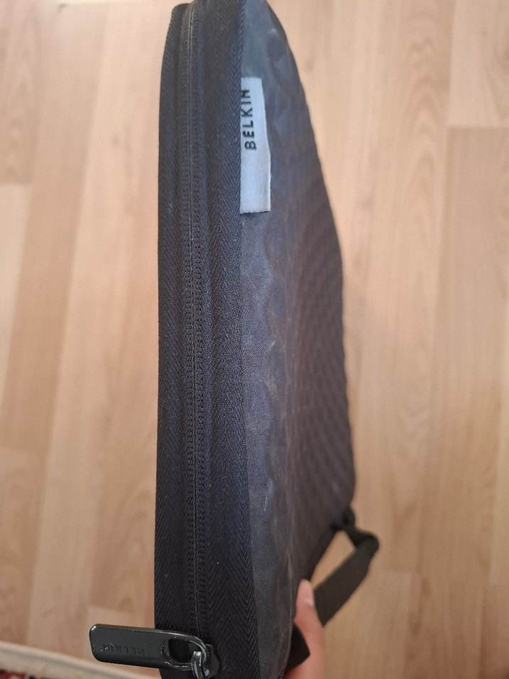 Belkin marka kadın laptop çantası, fermuarlı ve siyah yılan desenlidir. Sentetik kumaştan üretilmiş, günlük iş kullanımı için uygundur.
