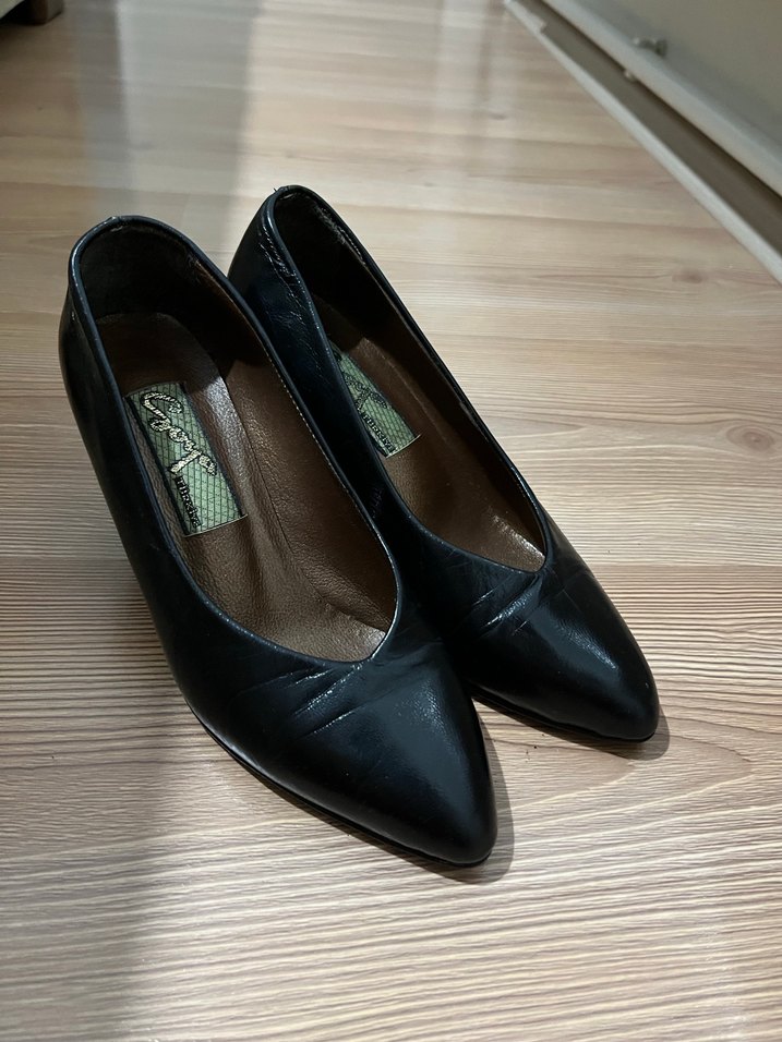 Klasik tarzda, ofis kullanımı için uygun, siyah yılan desenli ve plise detaylı kadın stiletto ayakkabı.
