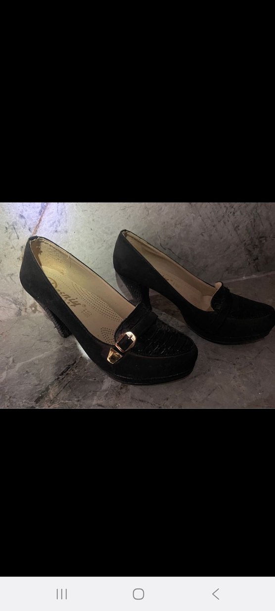 Kadınlar için siyah yılan desenli, tokalı, blok topuklu klasik ofis ayakkabısı. Gotik stil ile zarif bir görünüm sunar. Nisanda 2 saatliğine giyildi yırtık felan asla yoktur.