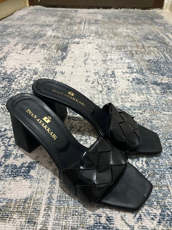 Kadın Siyah Yılan Desenli Topuklu Terlik