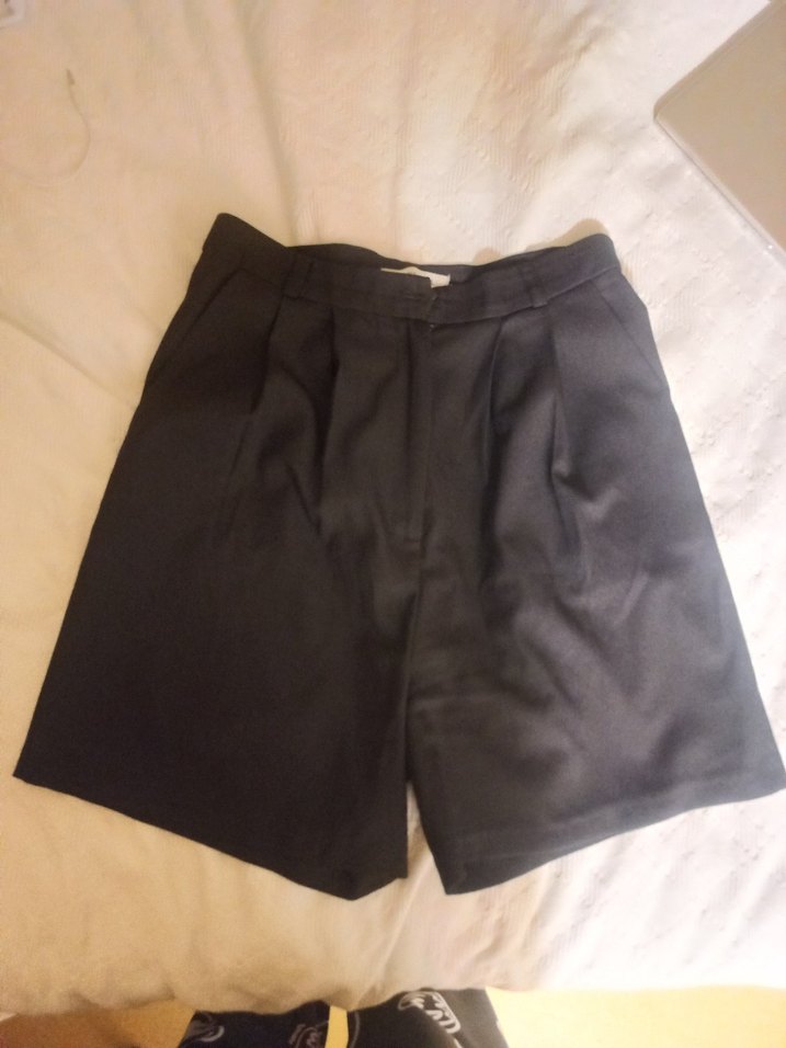 bol kesim siyah yüksek bel mini şort. Minimalist tarzda, ofis kullanımı için rahat ve şık.