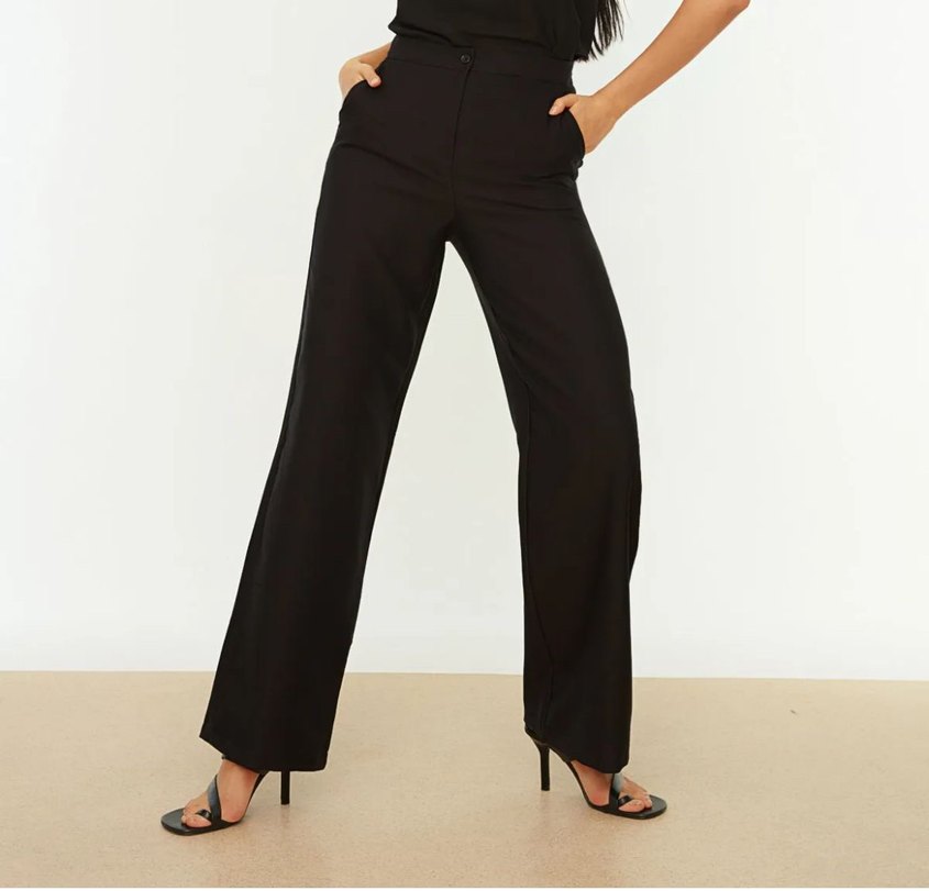 Kadın Siyah yüksek wide leg/geniş kumaş pantolon
