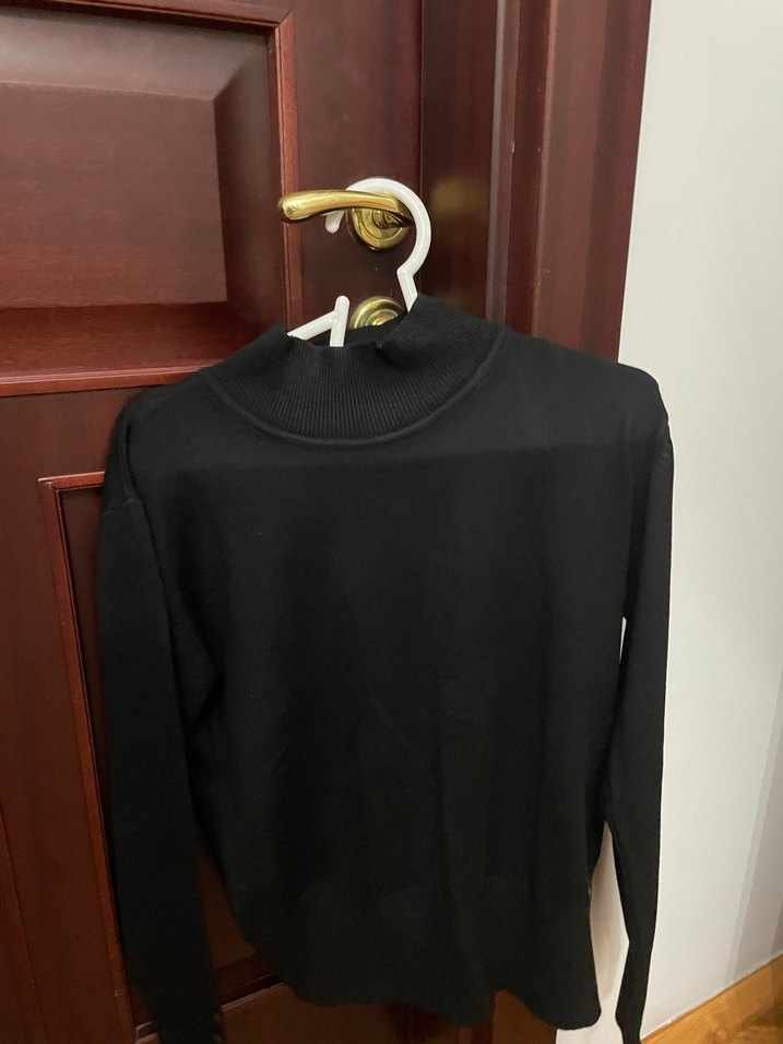 Kadın siyah yüksek yakalı, ince ve uzun kollu, vücuda oturan triko. İpeksi dokusu ve minimal tasarımıyla günlük kullanıma uygun.