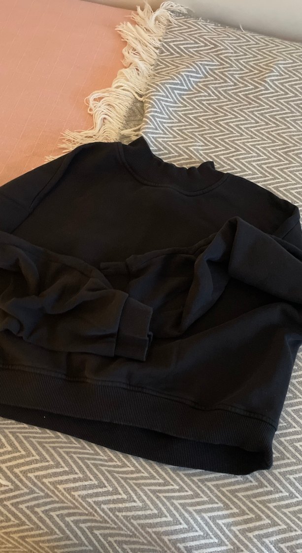 Kadınlar için yüksek yakalı, uzun kollu ve bol kesim siyah sweatshirt. Yumuşak sentetik kumaştan, sade ve rahat sokak tarzına uygun. Günlük kullanıma ideal.