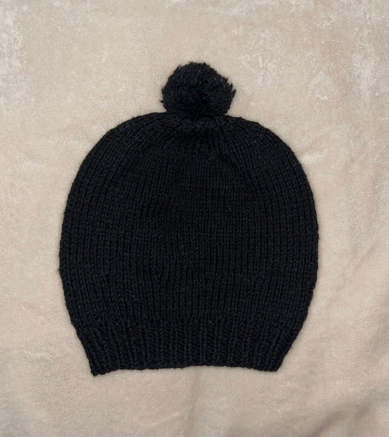 Siyah yünden örülmüş, tepe kısmında ponpon bulunan rahat bir kadın bere. Basic goth tarzına uygun.
