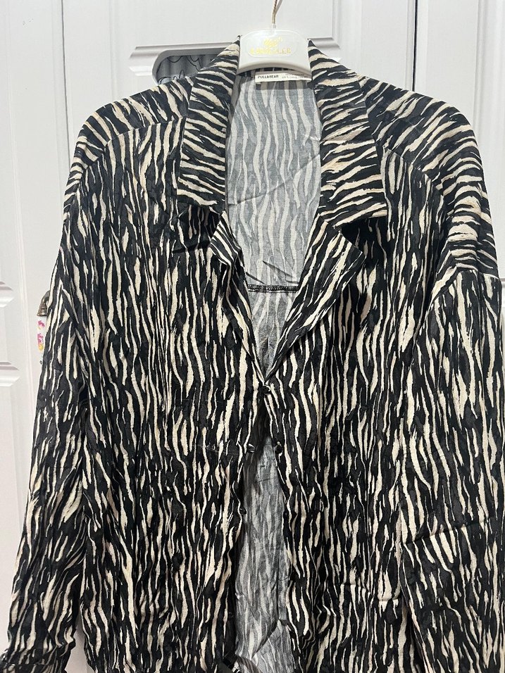 Kadın Siyah Zebra Desenli Uzun Kollu Gömlek